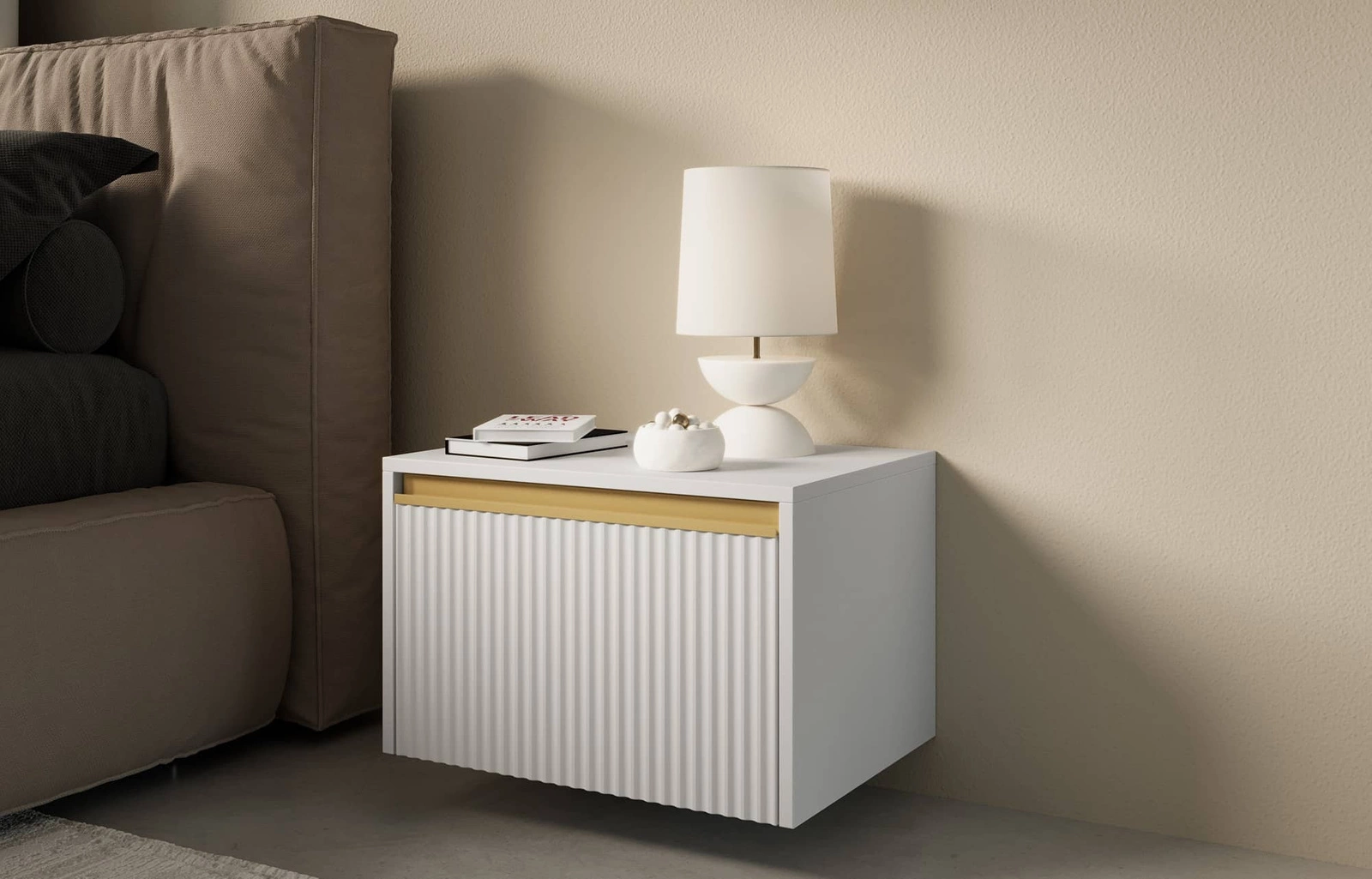 Szafka nocna z szufladą Imperial biała z możliwością podwieszenia modna szafka do sypialni z eleganckim frezowanym frontem