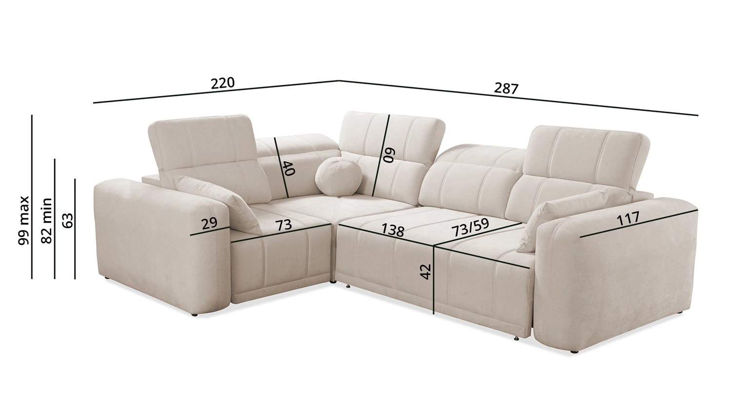 • głębokość: 117 / 220 cm