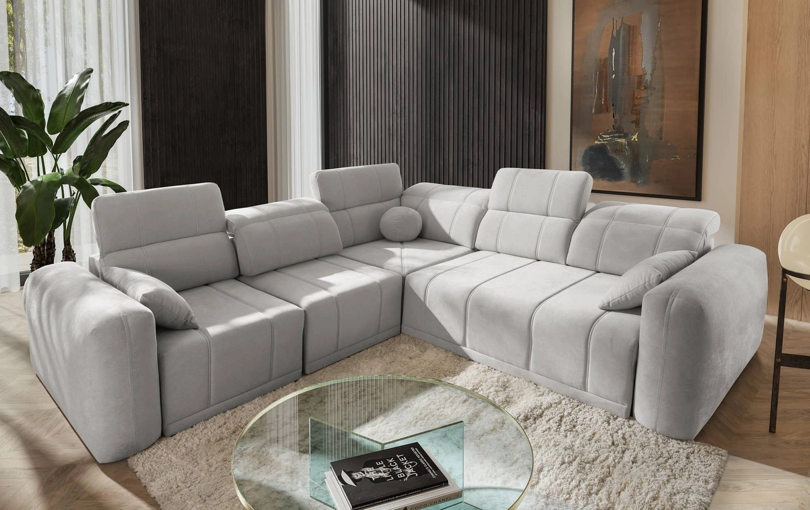 Narożnik z funkcją spania Cetara III to połączenie funkcjonalności z niezwykle stylową i elegancką formą. Całość pokryta została tkaniną typu plecionka Wind 84. Narożnik charakteryzuje się ciekawą konstrukcją, mnogością dodatków w postaci dekoracyjnych poduszek, które zapewnią jeszcze większy komfort i wygodę użytkowania tego niezwykle modernistycznego narożnika oraz wysoką jakością wykonania. Stylowy narożnik został wzbogacony innowacyjną funkcją przesuwanego oparcia pozwalającego dopasować głębokość siedziska. Nowoczesne wzornictwo narożnika spełni najbardziej wygórowane oczekiwania pod względem funkcjonalności jak i designu.