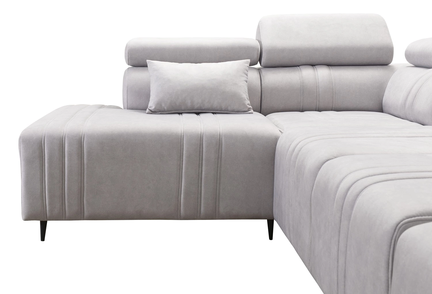 Narożnik Castel VII w kolorze szary brąz z regulowanymi zagłówkami to niezwykle elegancki mebel o ciekawym wykończeniu.
