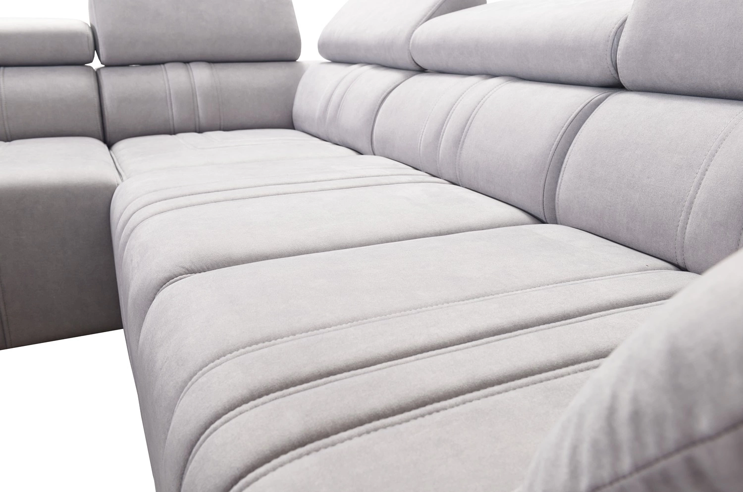 Narożnik Castel VII w kolorze beżowym z regulowanymi zagłówkami to niezwykle elegancki mebel o ciekawym wykończeniu.