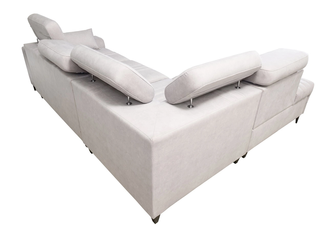 Narożnik z funkcją spania Castel VII beżowy lewostronny stylowy narożnik z pojemnikiem na pościel i regulowanymi zagłówkami