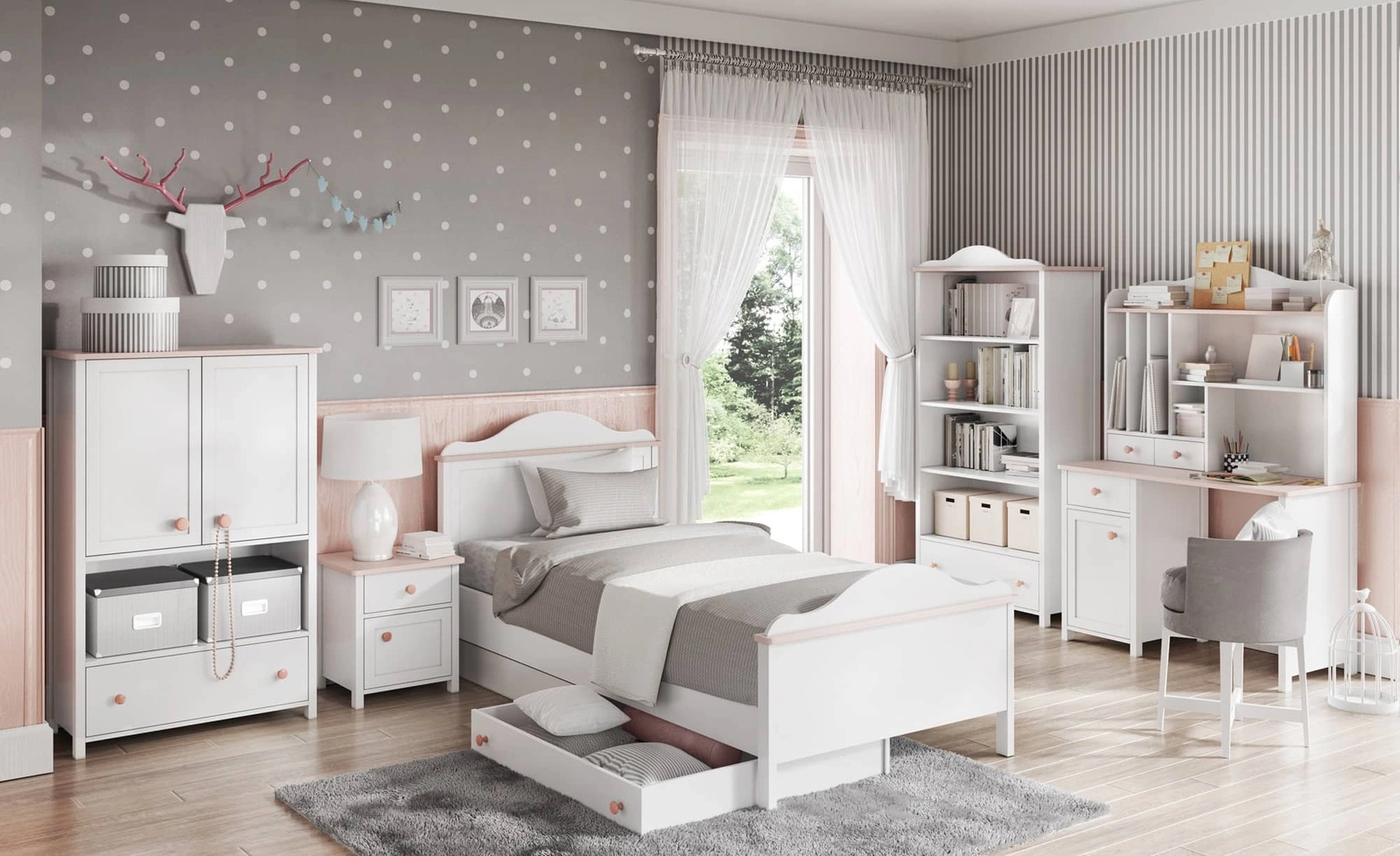 Zestaw mebli do pokoju dziecięcego Luna w kolorze biały / różowy Meble dziecięce Meble do pokoju dziecka