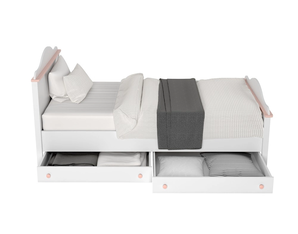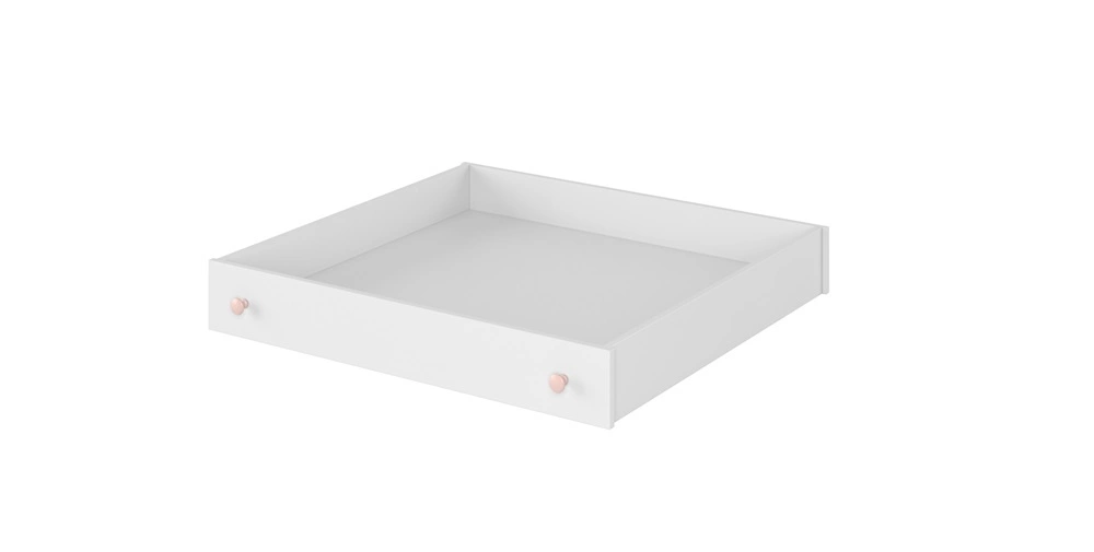 Szuflada do łóżka Luna 90x200 cm biała szuflada na kółkach z różowymi uchwytami praktyczny i pojemny schowek