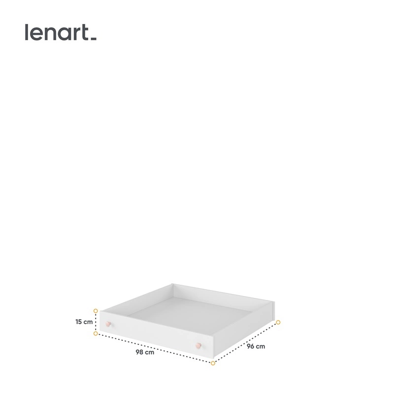 Szuflada do łóżka Luna to doskonała opcja do pokoju dziecka. Praktyczny, funkcjonalny oraz pojemny schowek, który można schować pod łóżkiem i zyskać dodatkowe miejsce na przechowywanie. Szuflada została wyposażona w kółka, które umożliwiają ciche i bezproblemowe wysuwanie pojemnika.
