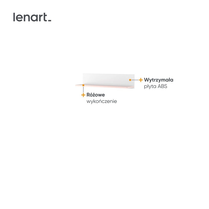 Półka Luna 110 cm biały / różowy praktyczna półka ścienna idealna do pokoju dziecięcego w minimalistycznym tonie