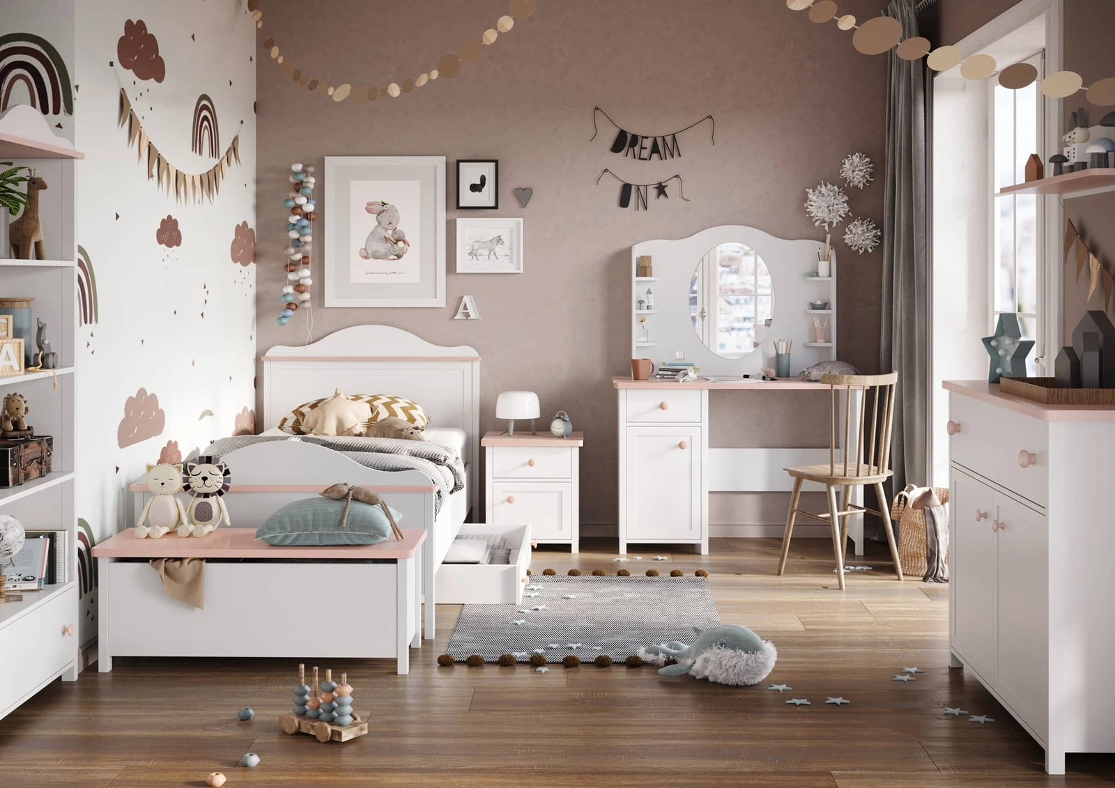 Półka 110 cm Luna w kolorze biały / różowy stworzy przytulną i elegancką przestrzeń w pokoju każdej dziewczynki.