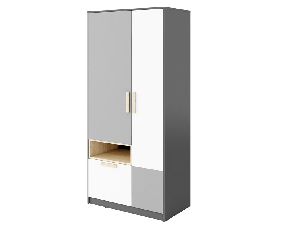 Szafa Pok 90 cm grafit / szary / biały / buk ibsen nowoczesna szafa do pokoju młodzieżowego uniwersalne połączenie kolorystyczne