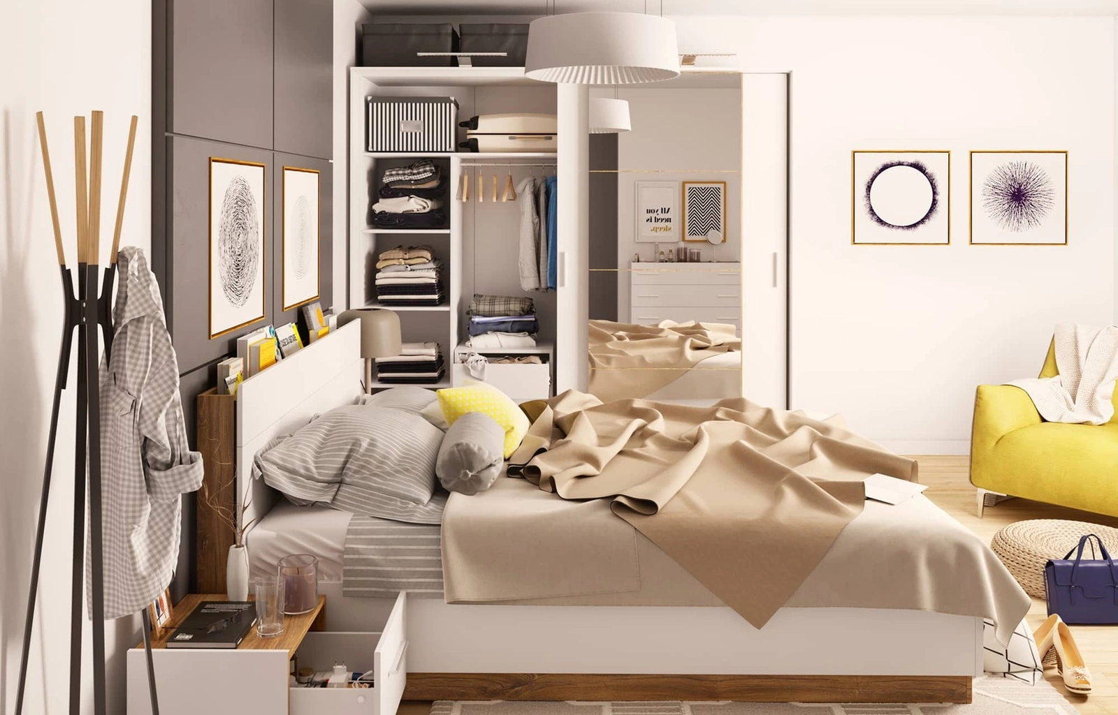 Szafka nocna do sypialni Dentro została zaprojektowana w sposób funkcjonalny i użytkowy, oferując dużo miejsca do przechowywania. Meble do sypialni Dentro zostały wykonane z solidnych materiałów, odpornych na uszkodzenia zapewniając niezawodność podczas codziennego użytkowania.