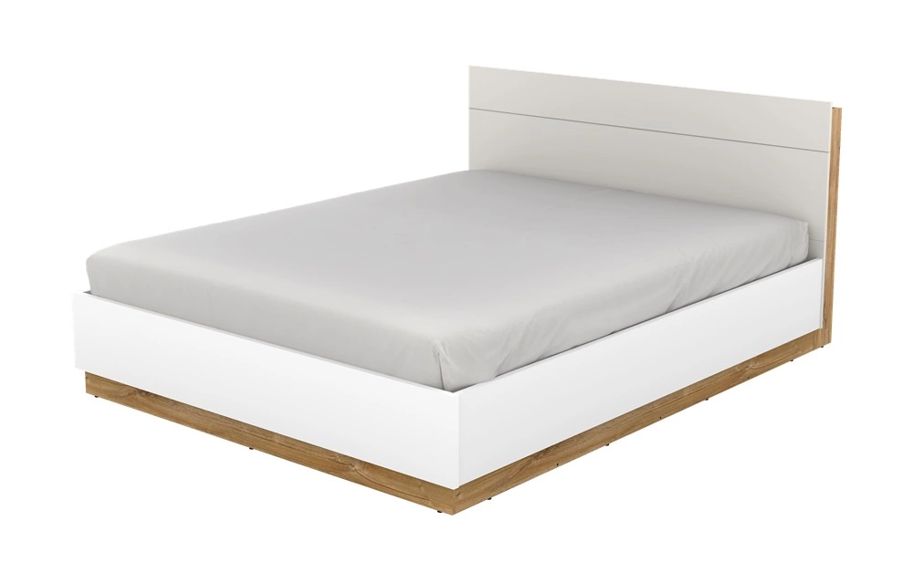 Łóżko z kolekcji z kolekcji Dentro to idealna propozycja dla osób ceniących gustowne aranżacje. Modny charakter mebla to przede wszystkim zasługa ponadczasowej i uniwersalnej bieli oraz dekoru w naturalnym odcieniu drewnaDodatkowym atutem łóżka jest subtelne oświetlenie LED umieszczone w zagłówku mebla, które wprowadzi do wnętrza klimatyczny nastrój i będzie pełnić funkcję lampki nocnej. Dzięki wysokiemu oparciu łóżko zyskuje kolejną funkcję. Można wygodnie siedzieć na łóżku, np. oglądając telewizję, pracując przy laptopie lub czytając książki. Uniwersalny i ponadczasowy styl mebli Dentro pozwala łatwo zaaranżować przytulną sypialnię zarówno w mniejszych, jak i większych pomieszczeniach.