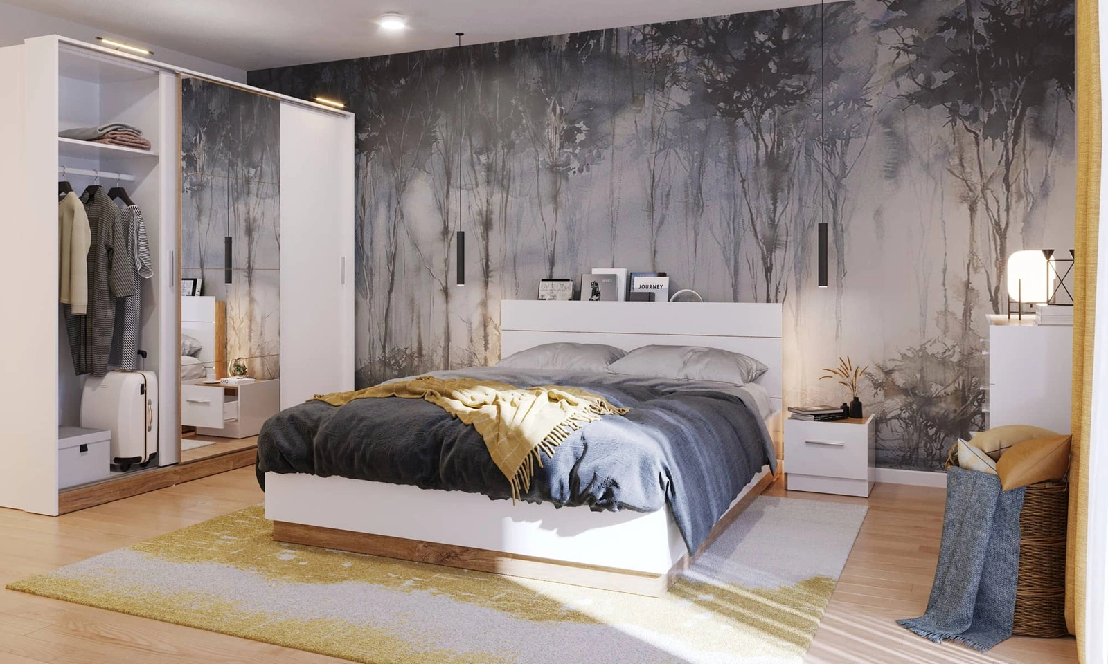 Zestaw mebli do sypialni Dentro w kolorze biały / dąb stirling