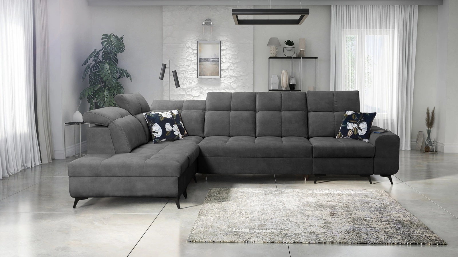 Narożnik Buffalo XI w kolorze grafitowym z regulowanymi zagłówkami to ciekawie prezentujący się mebel o eleganckim wykończeniu.