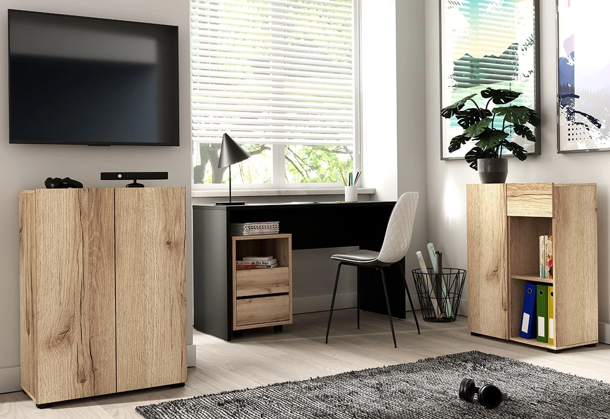 Biurko Agapi w kolorze czarnym to przepis na nowoczesne oraz funkcjonalne wnętrze w pokoju młodzieżowym lub biurze!