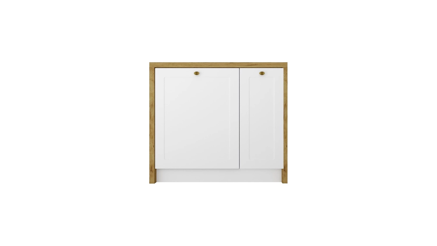 Wyspa kuchenna Adele 97 cm dąb złoty / biały funkcjonalny mebel kuchenny z szafkami odporny na działanie wilgoci metalowe uchwyty