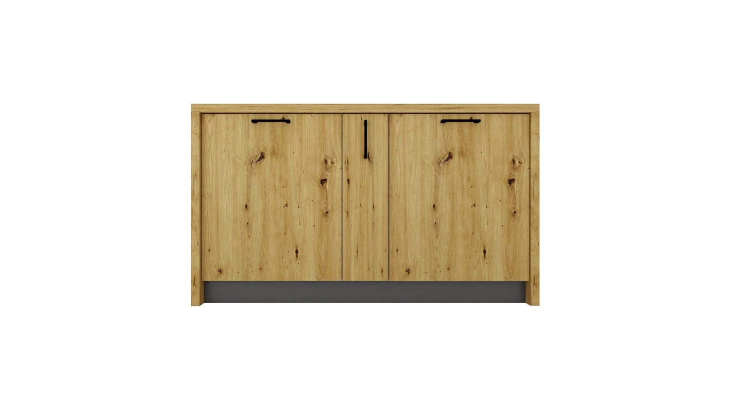 Wyspa kuchenna Clara 147 cm dąb artisan / szary popiel wolnostojąca wyspa kuchenna w stylu nowoczesnym szafka z koszem cargo