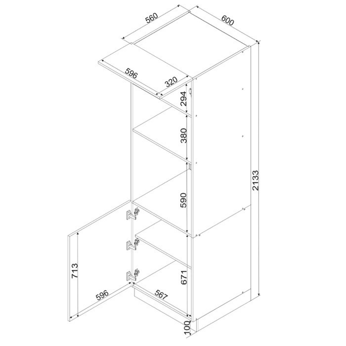 Słupek kuchenny Clara D60 PKMV/2133 szafka do zabudowy mikrofali i piekarnika odporna na parę wodną wysoką temperaturę i rozlane ciecze