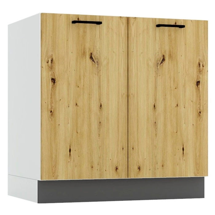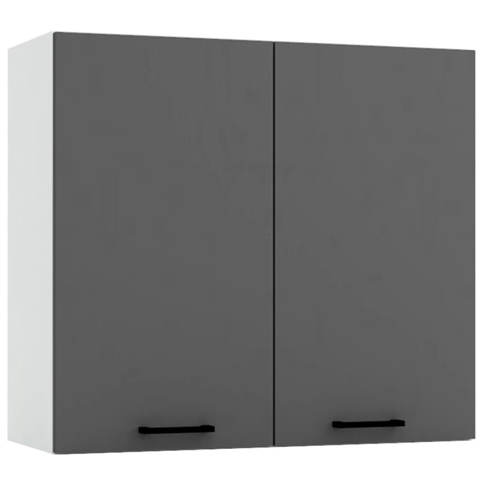 Meble kuchenne zostały wykonane z wysokiej jakości płyty laminowanej o grubości 16 mm. Zaletą tego rodzaju płyty jest wysoka odporność na wpływ zewnętrznych czynników takich jak para wodna, wysoka temperatura, wilgoć, rozlane ciecze. Użyty materiał jest także odporny na przypadkowe uszkodzenia. Obrzeża szafek zabezpieczone okleiną ABS zwiększają wytrzymałość szafki kuchennej. Stylowym dopełnieniem frontów mebli kuchennych są czarne, metalowe uchwyty, które poza swoją podstawową funkcją podkreślają nowoczesny design zestawu kuchennego.