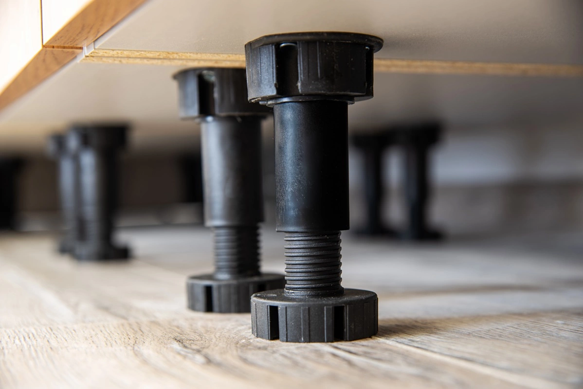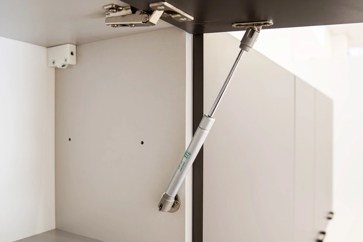 Komfort codziennego użytkowania zapewniają szuflady i zawiasy z systemem cichego domykania, które gwarantują płynne i praktycznie bezgłośne działanie. Szafki kuchenne są wyposażone w regulowane nogi, które zapewniają stabilne ustawienie szafek. Półki nie są przykręcone do korpusów szafek, dzięki czemu można dostosować ich poziom ułożenia lub je wyciągnąć i uzyskać miejsce na wysokie przedmioty. Drzwi są uniwersalne i można je zamontować po prawej lub po lewej stronie. Szafki kuchenne górne wyposażono w system zawieszania na uniwersalnej listwie montażowej.