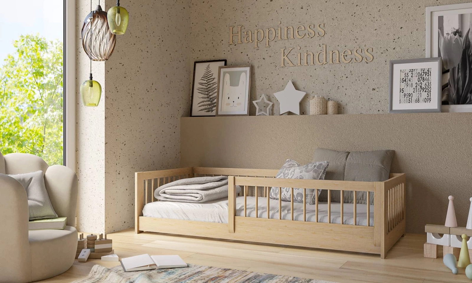 Łóżko drewniane Alova 80x160 cm idealnie wpasuje się do każdego stylu pokoju dziecięcego.