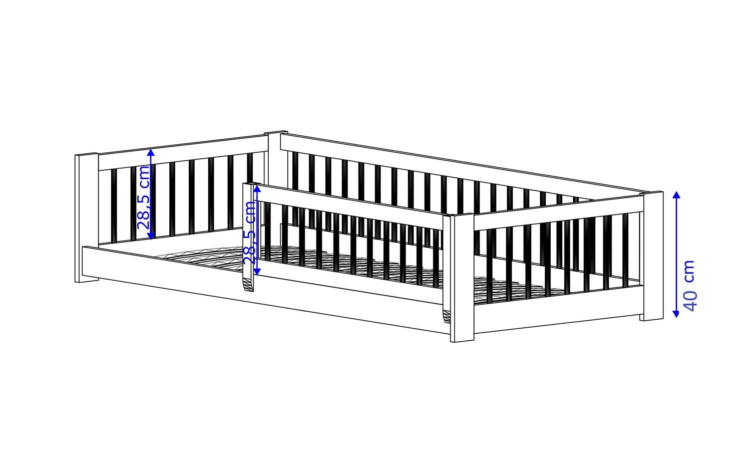 Łóżko drewniane Felipo to doskonała opcja do pokoju dziecięcego. Solidna konstrukcja łóżka zapewnia komfort oraz bezpieczeństwo podczas snu, oraz zabawy. Łóżko wykonane jest z litego drewna sosnowego zabezpieczonego lakierem, które charakteryzuje dużą wytrzymałością i jest odporne na czynniki zewnętrzne. Dużym atutem łóżka dziecięcego Felipo jest brak nóżek, przez co łóżko ułożone jest bezpośrednio na podłodze oraz obecność wysokiej barierki. Zwiększa to komfort korzystania oraz chroni dziecko przed niefortunnym upadkiem.