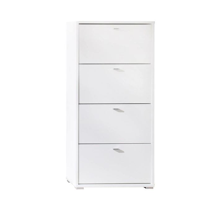 Szafka na buty Anter biała funkcjonalna szafka do przedpokoju praktyczne 4 drzwi otwierane do dołu