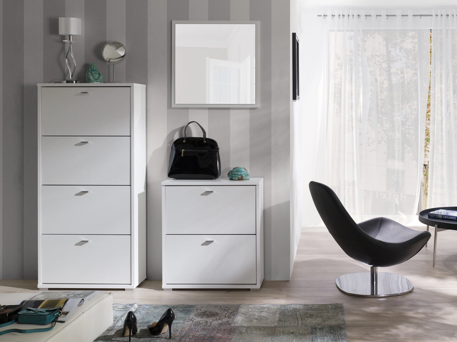Szafka na buty Anter w kolorze białym to przepis na nowoczesne oraz funkcjonalne wnętrze w Twoim domu!