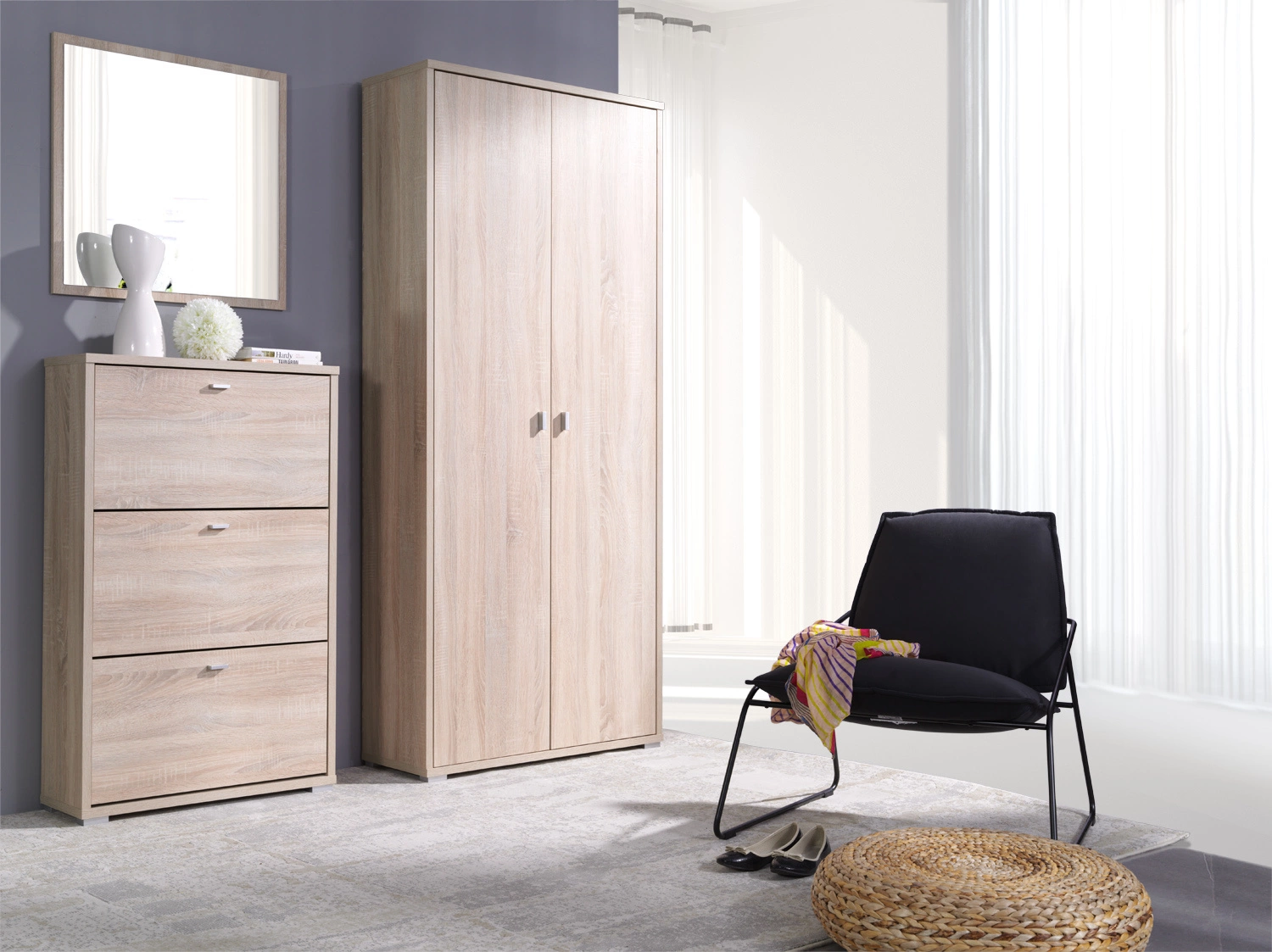 Zestaw mebli do przedpokoju Anter dąb sonoma jasny klasyczny design funkcjonalna oraz praktyczna garderoba do przedpokoju