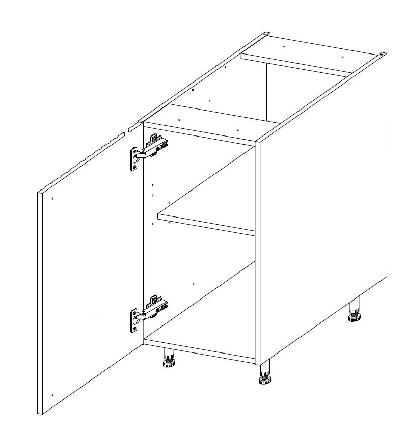 Zastosowanie takiego systemu zwiększa komfort i bezpieczeństwo użytkowania mebli, a także bezgłośne domykanie frontówSzafki kuchenne dolne są wyposażone w nogi, których wysokość można regulować. Szafki kuchenne górne wyposażono w system zawieszania na uniwersalnej listwie montażowej