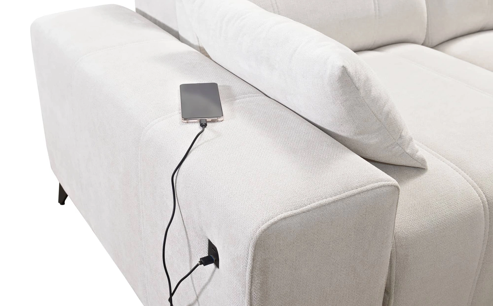 Detal narożnika z funkcją spania Penejos VI Narożnik z gniazdem ładowania USB