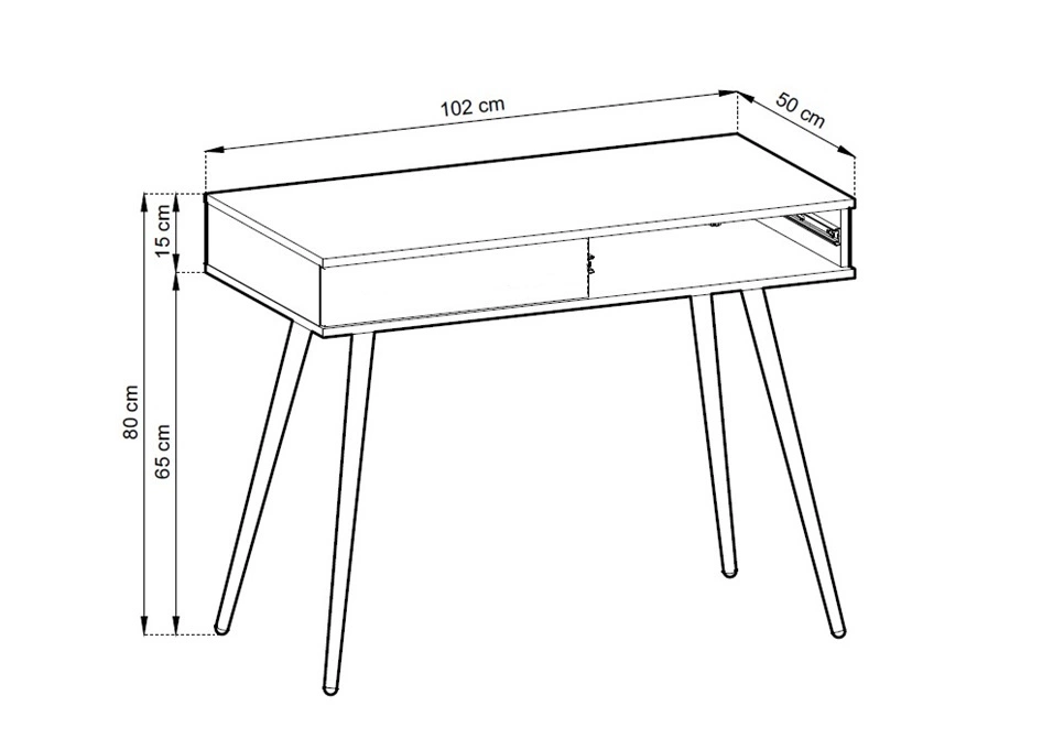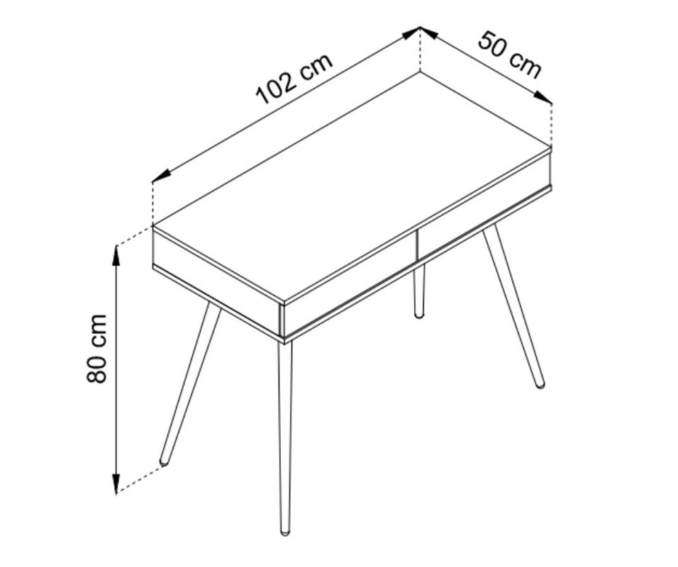 Mebel jest skonstruowany z 2 szuflad z systemem pełnego wysuwu. Konsola do przedpokoju jest wykonana z wysokiej jakości płyty laminowanej, która charakteryzuje się wysoką odpornością na wpływ czynników zewnętrznych. Do otwierania szuflad toaletki zastosowano bezuchwytowy system push to open. Dzięki swojej formie oraz uniwersalności konsola świetnie sprawdzi się jako toaletka, a także jako biurka do biura domowego.