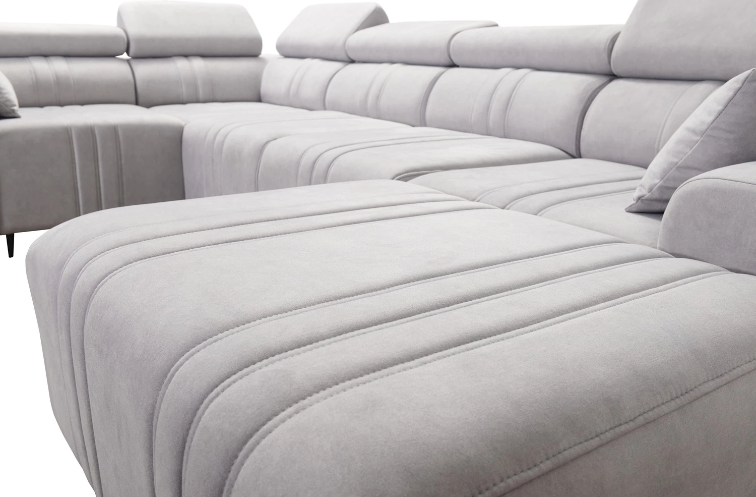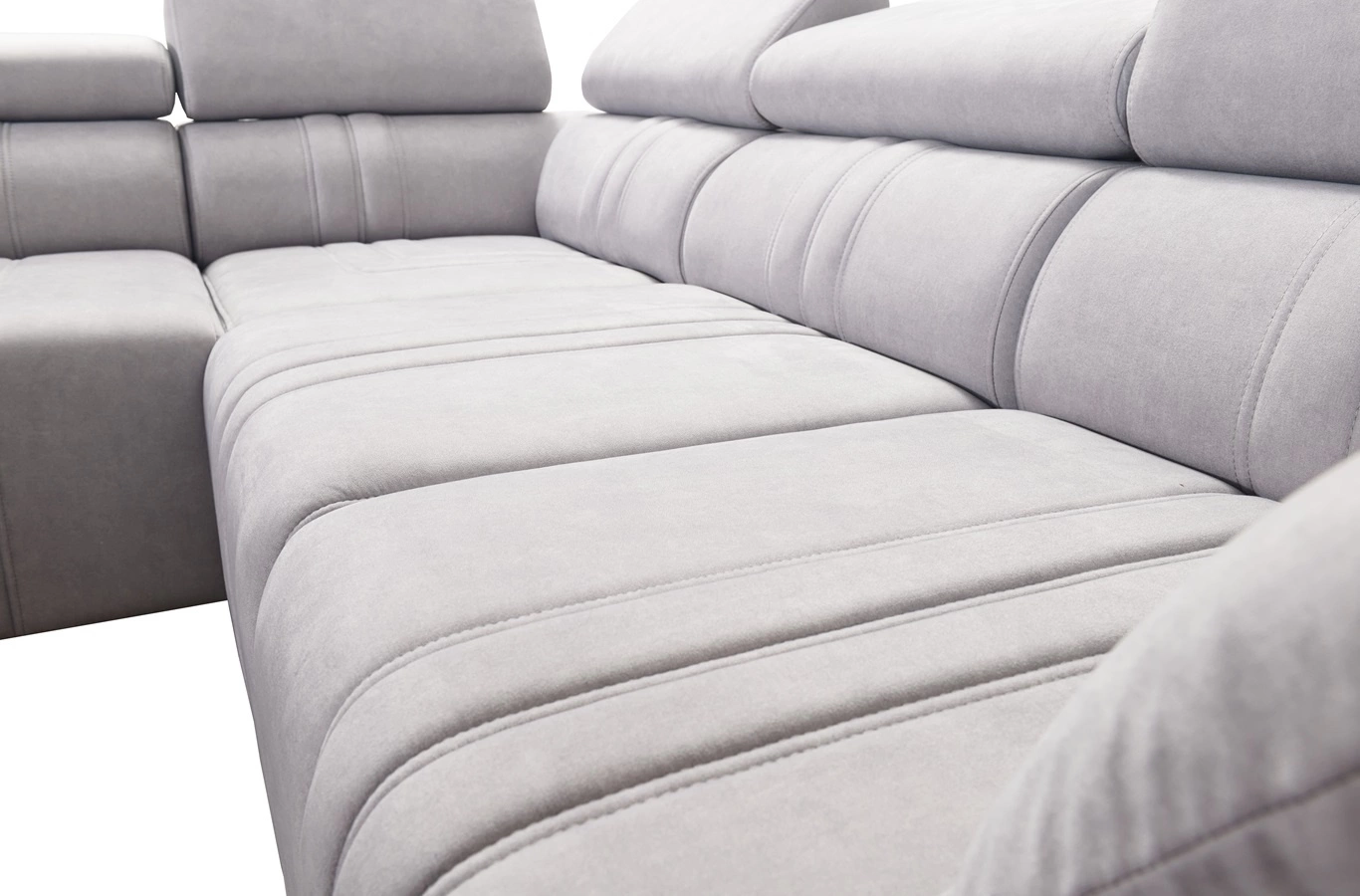 Narożnik Castel IV w kolorze beżowym z regulowanymi zagłówkami to niezwykle elegancki mebel o ciekawym wykończeniu.