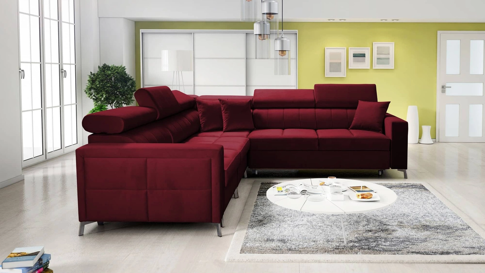 Narożnik Nausa IV w kolorze bordowym z regulowanymi zagłówkami to elegancki mebel, który dopasuje sie do każdej aranżacji.