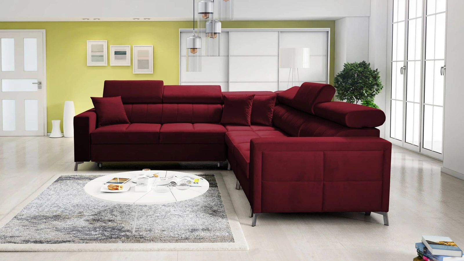 Narożnik Nausa IV w kolorze bordowym z regulowanymi zagłówkami to elegancki mebel, który dopasuje sie do każdej aranżacji.
