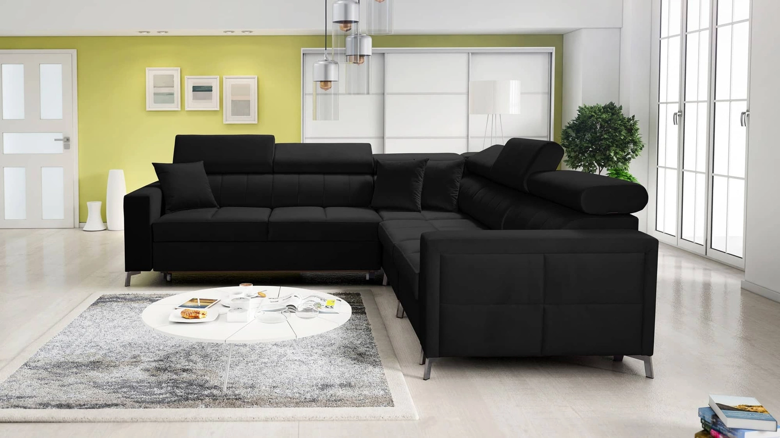 Narożnik Nausa IV w kolorze czarnym z regulowanymi zagłówkami to elegancki mebel, który dopasuje sie do każdej aranżacji.