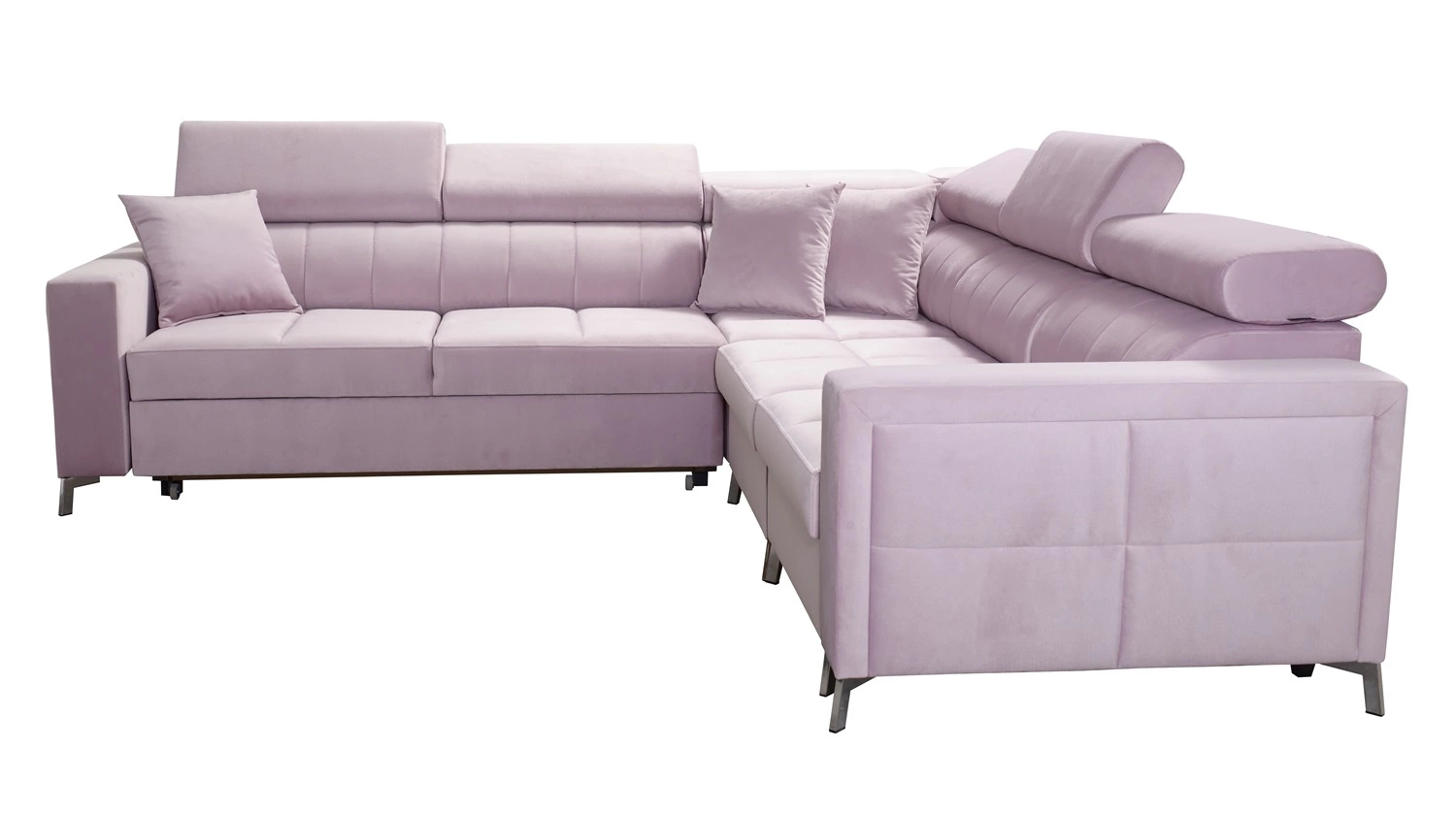 Narożnik z funkcją spania Nausa IV wykonany z tkaniny typu velvet Jaguar 2183 gwarantuje najwyższy komfort i funkcjonalność podczas codziennego wypoczynku w salonie, sypialni, pokoju dziennym, pokoju gościnnym czy innym pomieszczeniu, w którym planujesz ustawić ten niezwykle modernistyczny i nowoczesny narożnik!