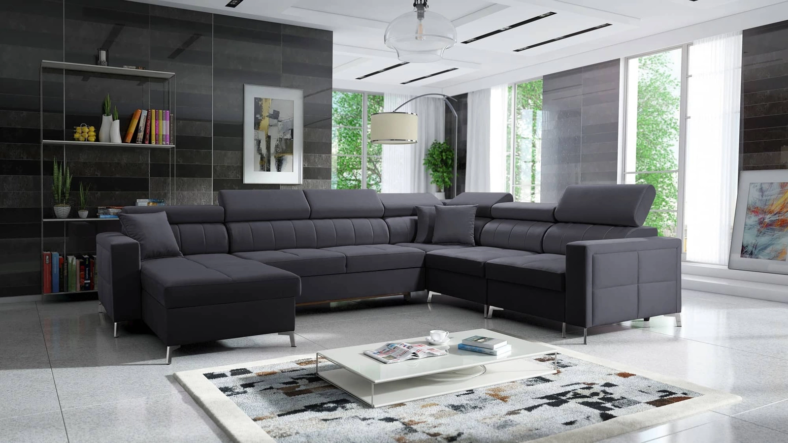 Narożnik Nausa VII w kolorze grafitowym z regulowanymi zagłówkami to elegancki mebel, który dopasuje się do każdej aranżacji.