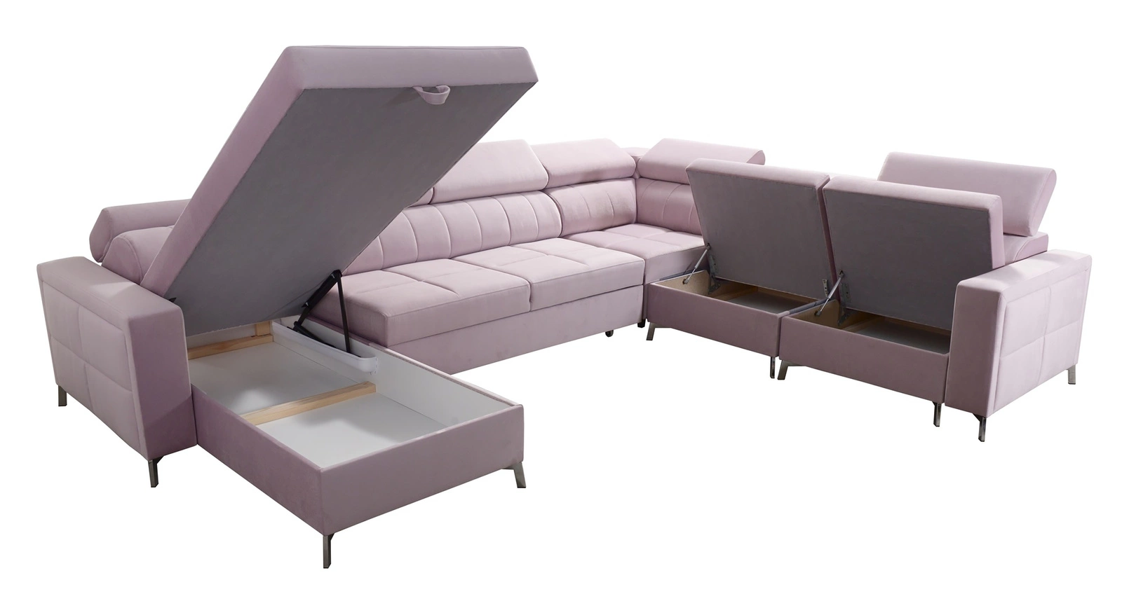 Narożnik z funkcją spania Nausa VII wykonany z tkaniny typu velvet Jaguar 2191 gwarantuje najwyższy komfort i funkcjonalność podczas codziennego wypoczynku w salonie, sypialni, pokoju dziennym, pokoju gościnnym czy innym pomieszczeniu, w którym planujesz ustawić ten niezwykle modernistyczny i nowoczesny narożnik. Stylowy narożnik został wzbogacony ozdobnymi przeszyciami na siedzisku, które dodają elegancji i charakteru. Obecność ozdobnych poduszek zapewni jeszcze większy komfort i wygodę użytkowania narożnika. Nowoczesne wzornictwo narożnika spełni najbardziej wygórowane oczekiwania pod względem funkcjonalności jak i designu.