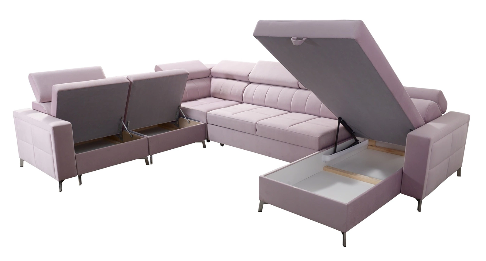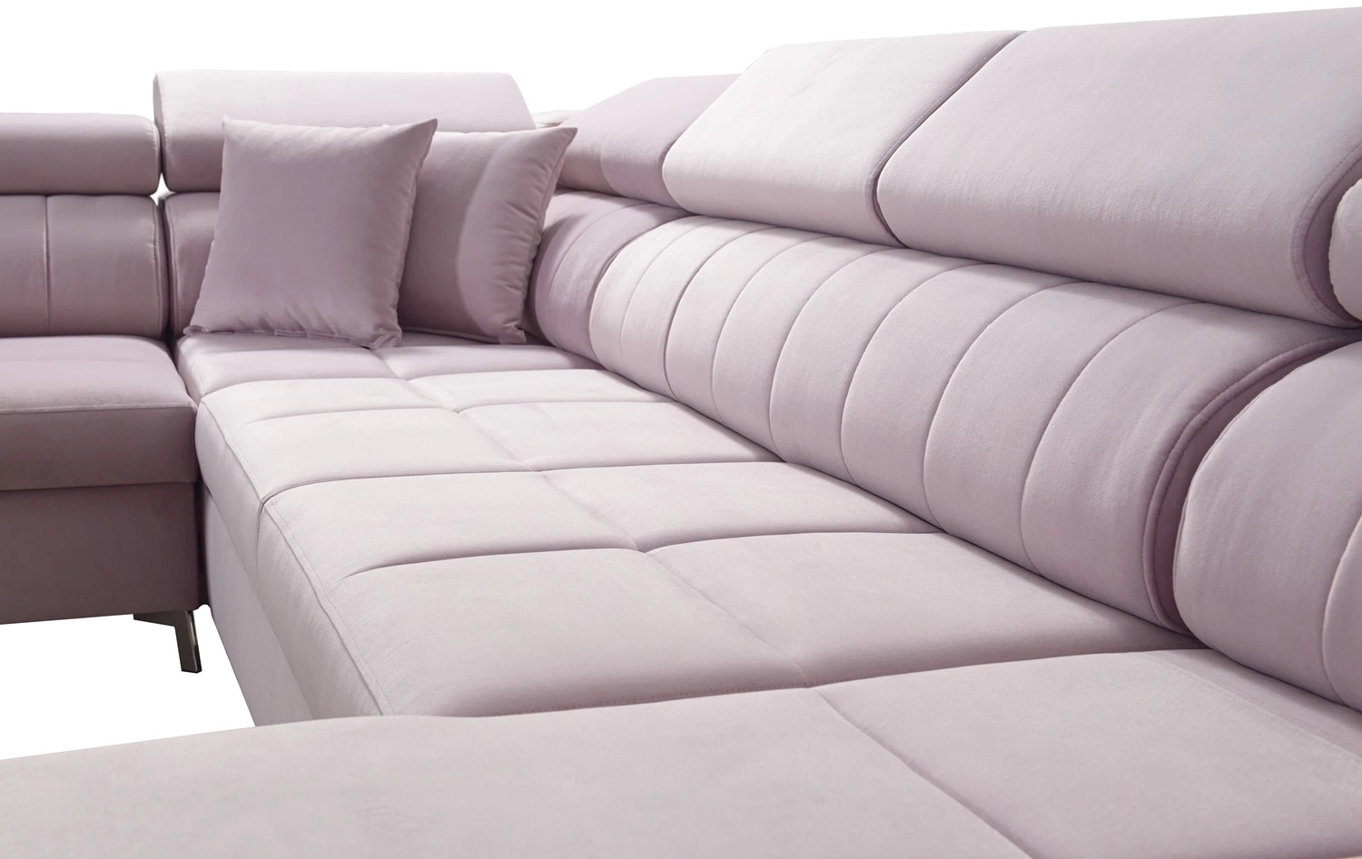 Narożnik z funkcją spania Nausa VII wykonany z tkaniny typu velvet Jaguar 2167 gwarantuje najwyższy komfort i funkcjonalność podczas codziennego wypoczynku w salonie, sypialni, pokoju dziennym, pokoju gościnnym czy innym pomieszczeniu, w którym planujesz ustawić ten niezwykle modernistyczny i nowoczesny narożnik. Stylowy narożnik został wzbogacony ozdobnymi przeszyciami na siedzisku, które dodają elegancji i charakteru. Obecność ozdobnych poduszek zapewni jeszcze większy komfort i wygodę użytkowania narożnika. Nowoczesne wzornictwo narożnika spełni najbardziej wygórowane oczekiwania pod względem funkcjonalności jak i designu.