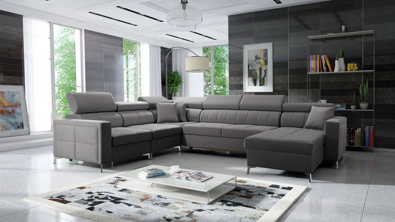 Narożnik Nausa VII w kolorze szarym z regulowanymi zagłówkami to elegancki mebel, który dopasuje się do każdej aranżacji.