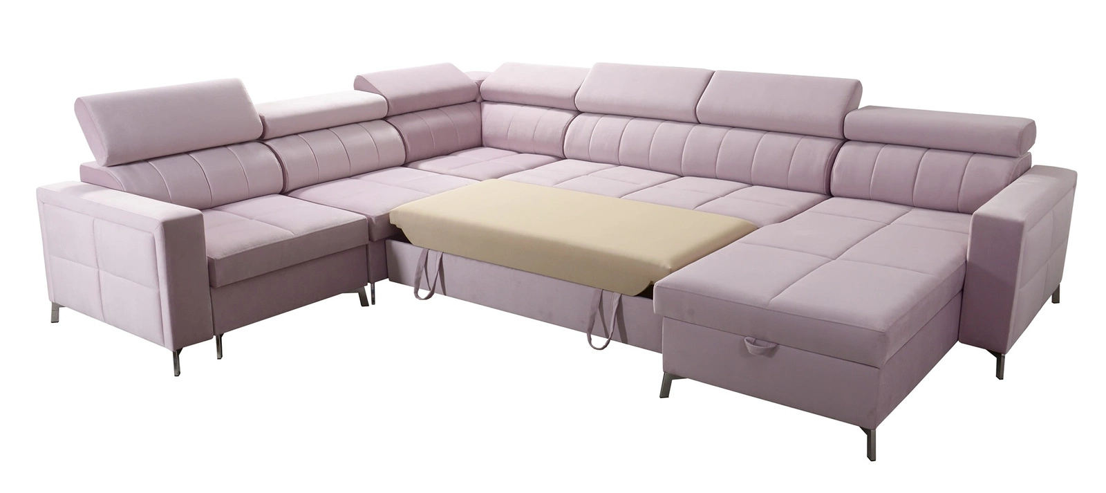 Narożnik z funkcją spania Nausa VII wykonany z tkaniny typu velvet Jaguar 2181 gwarantuje najwyższy komfort i funkcjonalność podczas codziennego wypoczynku w salonie, sypialni, pokoju dziennym, pokoju gościnnym czy innym pomieszczeniu, w którym planujesz ustawić ten niezwykle modernistyczny i nowoczesny narożnik. Stylowy narożnik został wzbogacony ozdobnymi przeszyciami na siedzisku, które dodają elegancji i charakteru. Obecność ozdobnych poduszek zapewni jeszcze większy komfort i wygodę użytkowania narożnika. Nowoczesne wzornictwo narożnika spełni najbardziej wygórowane oczekiwania pod względem funkcjonalności jak i designu.