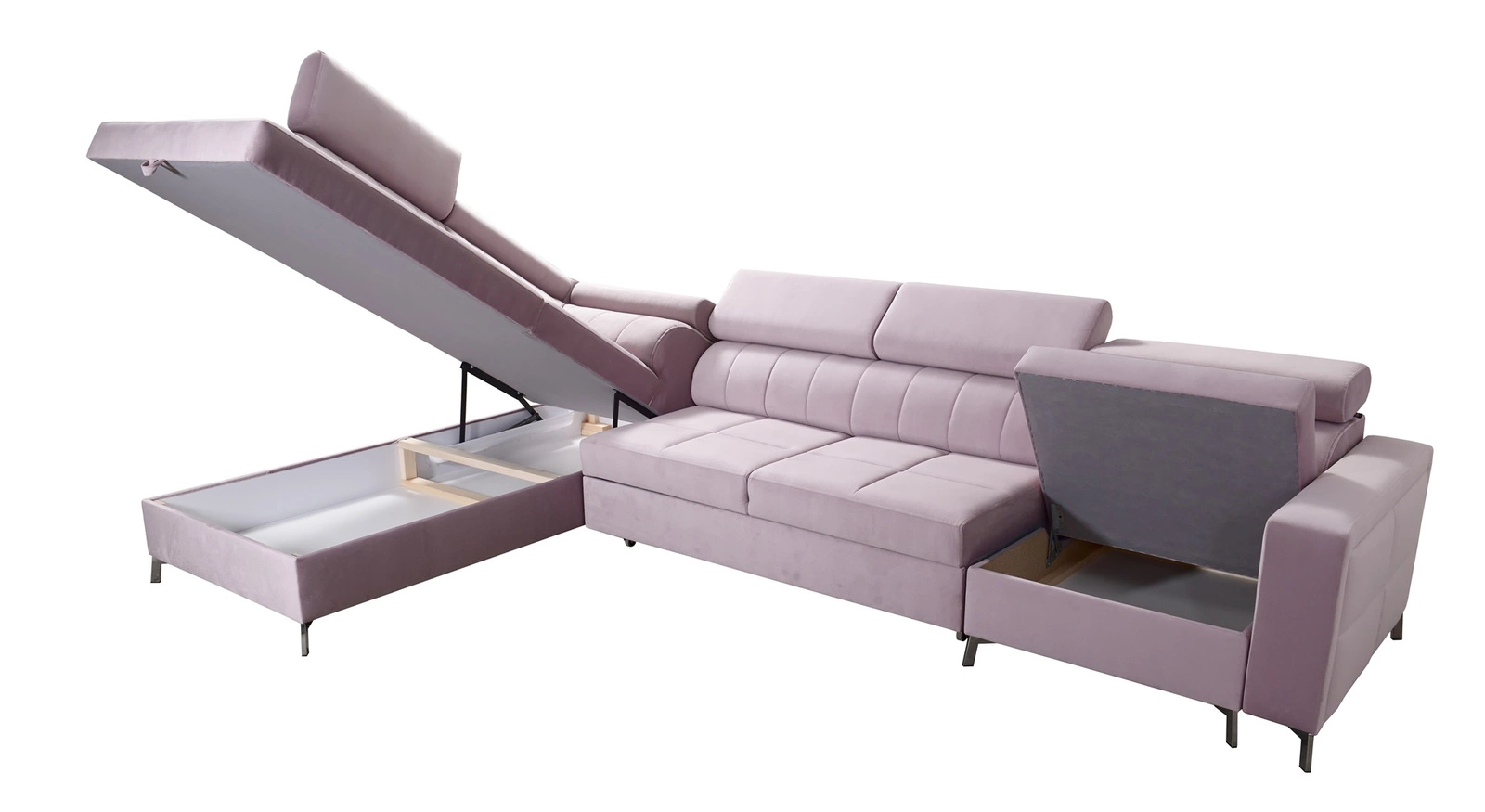 Narożnik z funkcja spania Nausa X wykonany z tkaniny typu velvet Jaguar 2177 gwarantuje najwyższy komfort i funkcjonalność podczas codziennego wypoczynku w salonie, sypialni, pokoju dziennym, pokoju gościnnym czy innym pomieszczeniu, w którym planujesz ustawić ten niezwykle modernistyczny i nowoczesny narożnik. Stylowy narożnik został wzbogacony ozdobnymi przeszyciami na siedzisku, które dodają elegancji i charakteru. Obecność ozdobnych poduszek zapewni jeszcze większy komfort i wygodę użytkowania narożnika. Nowoczesne wzornictwo narożnika spełni najbardziej wygórowane oczekiwania pod względem funkcjonalności jak i designu.