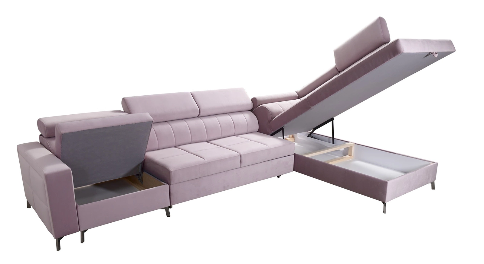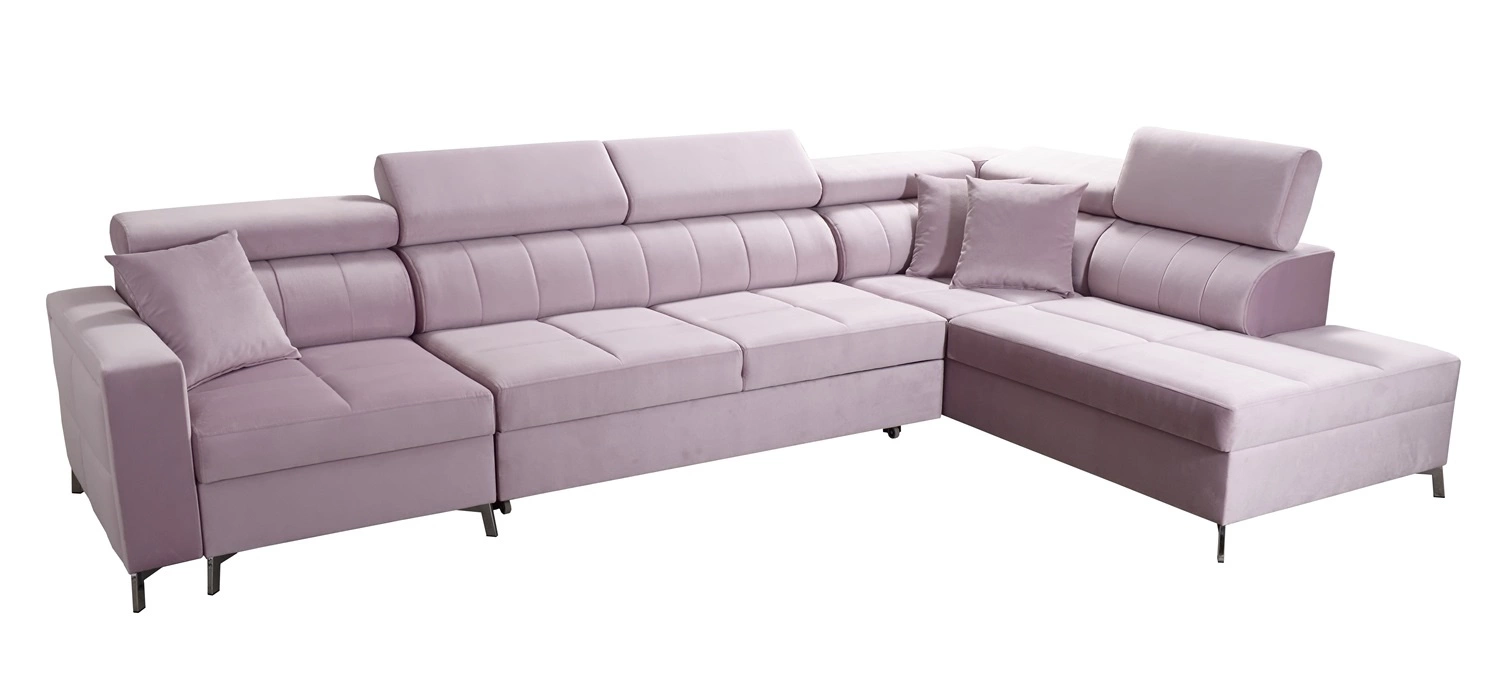 Narożnik z funkcja spania Nausa X wykonany z tkaniny typu velvet Jaguar 2185 gwarantuje najwyższy komfort i funkcjonalność podczas codziennego wypoczynku w salonie, sypialni, pokoju dziennym, pokoju gościnnym czy innym pomieszczeniu, w którym planujesz ustawić ten niezwykle modernistyczny i nowoczesny narożnik. Stylowy narożnik został wzbogacony ozdobnymi przeszyciami na siedzisku, które dodają elegancji i charakteru. Obecność ozdobnych poduszek zapewni jeszcze większy komfort i wygodę użytkowania narożnika. Nowoczesne wzornictwo narożnika spełni najbardziej wygórowane oczekiwania pod względem funkcjonalności jak i designu.