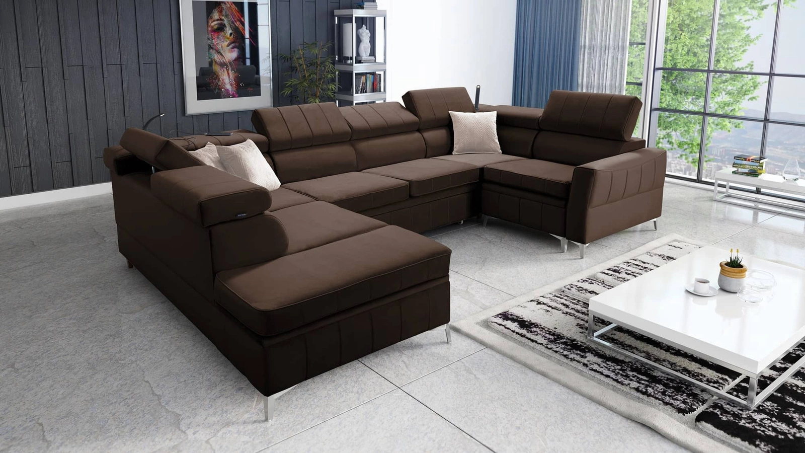 Narożnik Rava V w kolorze brązowym z regulowanymi zagłówkami to elegancki mebel, który dopasuje się do każdej aranżacji.