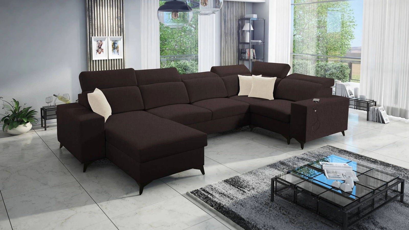 Narożnik Kelly Sleek IV w kolorze brązowym z regulowanymi zagłówkami to przepis na nowoczesne wnętrze w Twoim domu.