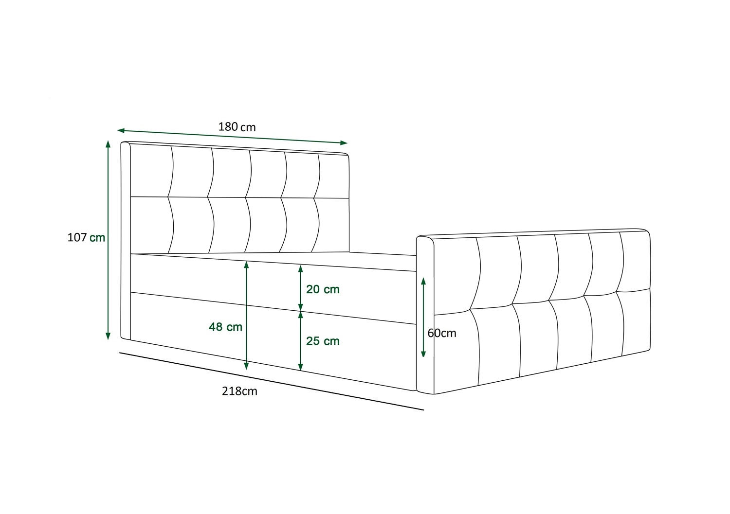 Łóżko wykonane z tkaniny typu velvet Monolith 70 gwarantuje najwyższy komfort i funkcjonalność podczas codziennego wypoczynku w sypialni. Tkanina posiada powłokę hydrofobową, co gwarantuje ograniczone wchłanianie cieczy. Ciekawa struktura tkaniny nadaje wyjątkowego charakteru. Dzięki wszystkim właściwościom użytej tkaniny, łóżko kontynentalne na długo zachowa swój pierwotny wygląd. Konstrukcja łóżka zapewnia dużą stabilność i wygodę użytkowania. Rama łóżka kontynentalnego jest wykonana z drewna oraz płyty meblowej. Pikowane wezgłowie przyciąga wzrok i nadaje łóżku szczególnego charakteru.