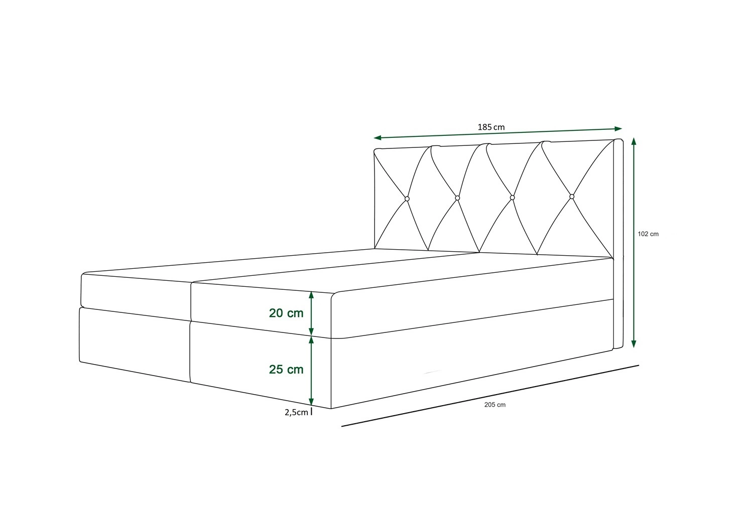 Łóżko wykonane z tkaniny typu velvet Monolith 15 gwarantuje najwyższy komfort i funkcjonalność podczas codziennego wypoczynku w sypialni. Tkanina posiada powłokę hydrofobową, co gwarantuje ograniczone wchłanianie cieczy. Ciekawa struktura tkaniny nadaje wyjątkowego charakteru. Dzięki wszystkim właściwościom użytej tkaniny, łóżko kontynentalne na długo zachowa swój pierwotny wygląd. Konstrukcja łóżka zapewnia dużą stabilność i wygodę użytkowania. Rama łóżka kontynentalnego jest wykonana z drewna oraz płyty meblowej. Delikatnie pikowane wezgłowie przyciąga wzrok i nadaje łóżku szczególnego charakteru.
