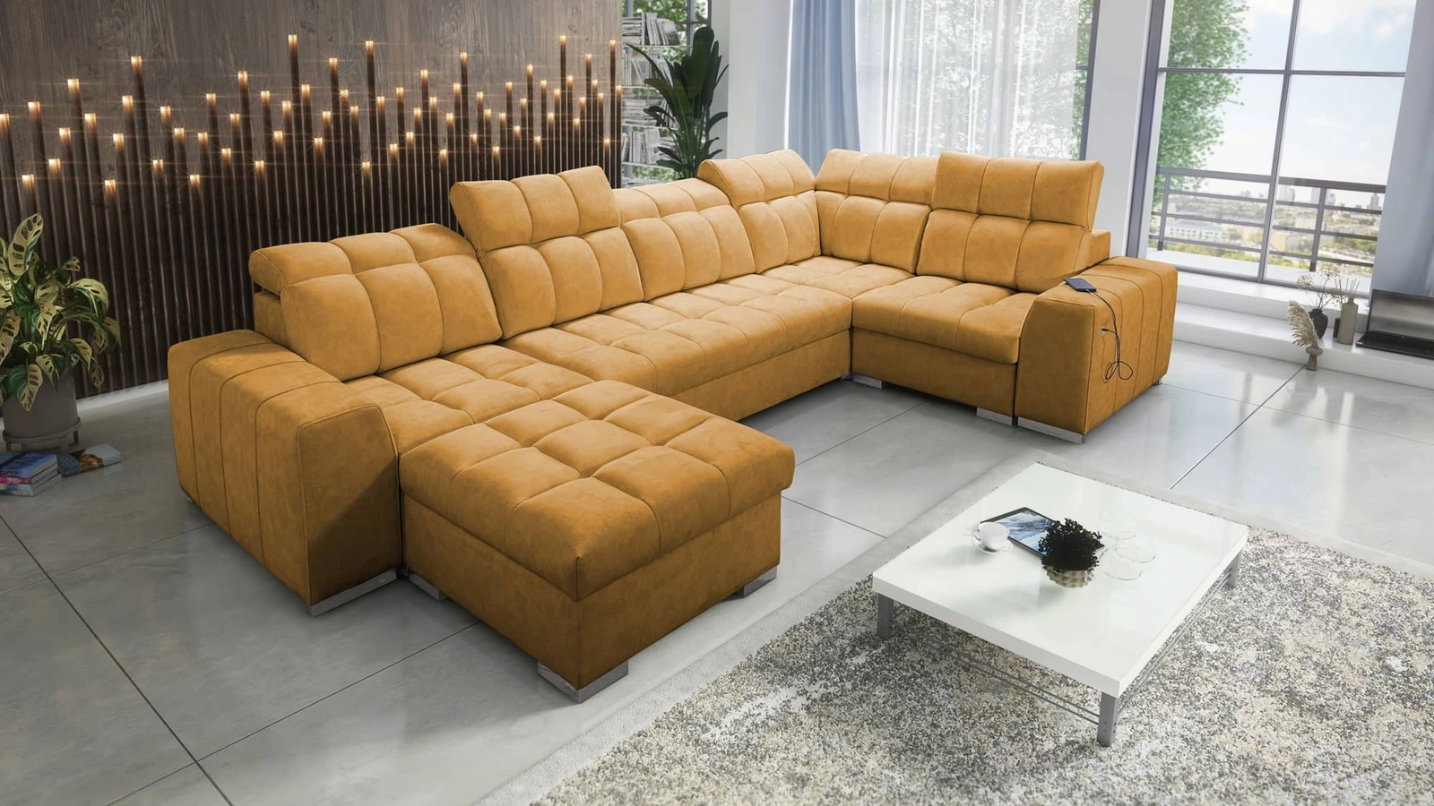 Narożnik Luigi IV w kolorze miodowym z regulowanymi zagłówkami to zachwycający mebel z gwarancją najwyższego komfortu i funkcjonalności.