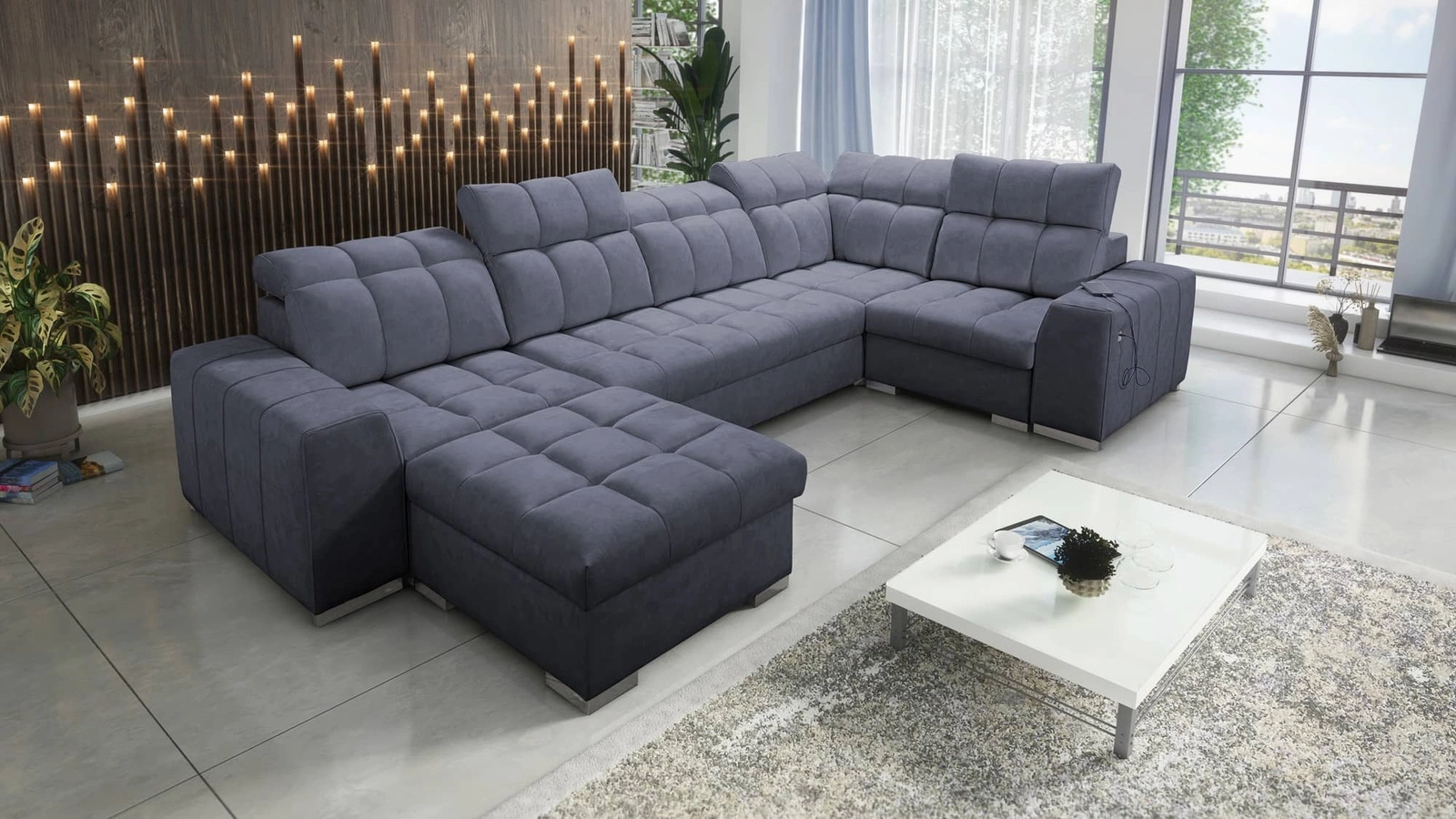 Narożnik Luigi IV w kolorze grafitowym z regulowanymi zagłówkami to zachwycający mebel z gwarancją najwyższego komfortu i funkcjonalności.