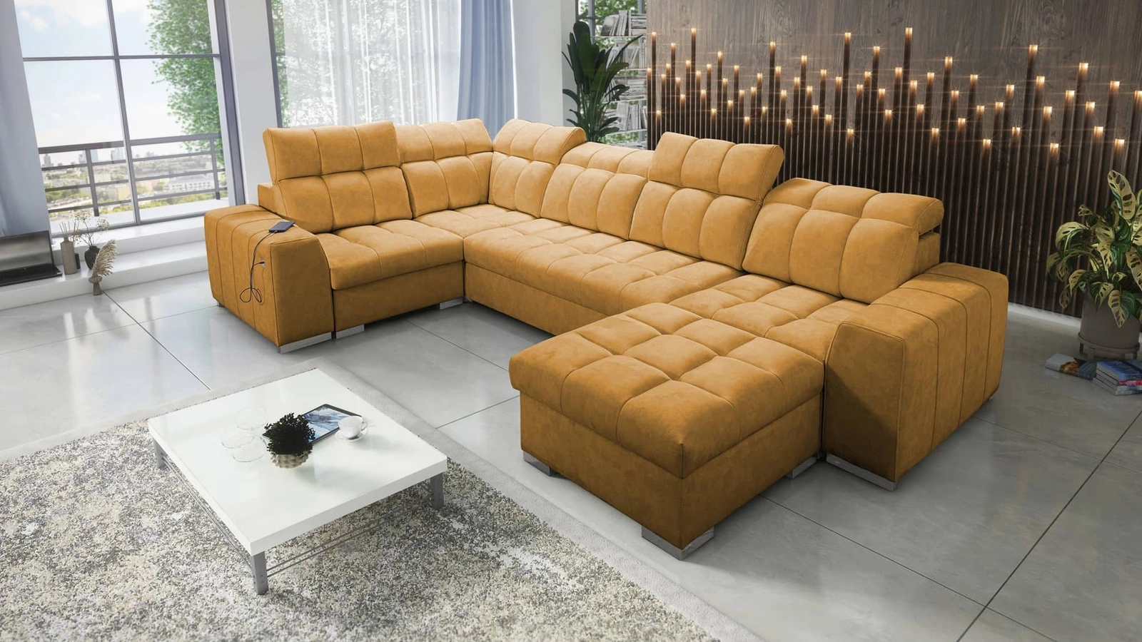 Narożnik Luigi IV w kolorze miodowym z regulowanymi zagłówkami to zachwycający mebel z gwarancją najwyższego komfortu i funkcjonalności.