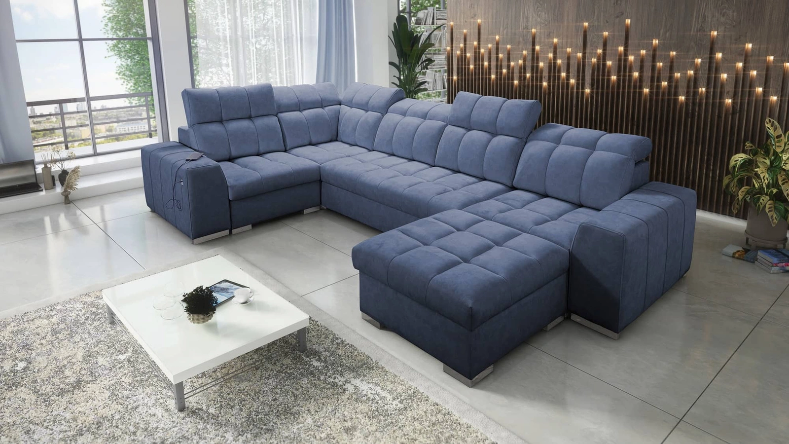 Narożnik Luigi IV w kolorze niebieskim z regulowanymi zagłówkami to zachwycający mebel z gwarancją najwyższego komfortu i funkcjonalności.